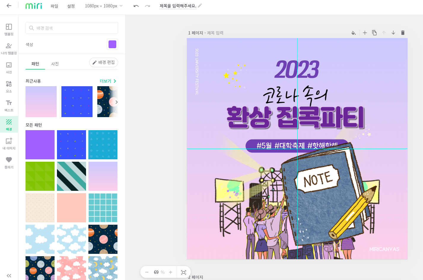 우선 지난시간에 대학축제 라인업 템플릿을 사용해 기본설정을 해 주었죠.