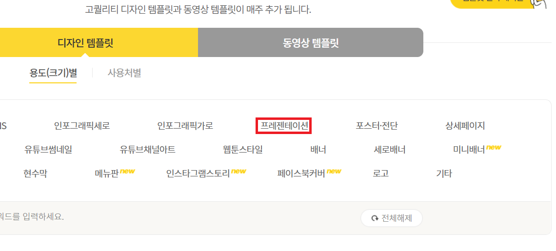 자세히 보시면 [프레젠테이션]이라고 되어있는 부분이 PPT 템플릿입니다.