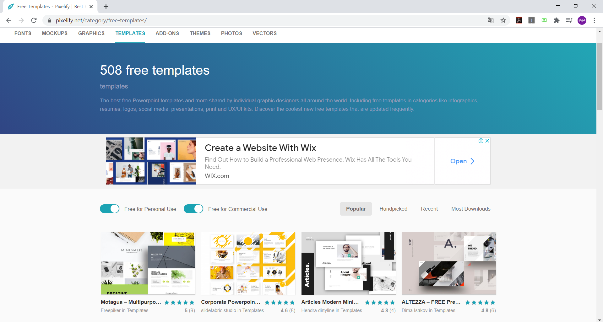 508개의 무료 템플릿을 제공해준다는, Pixelify입니다.